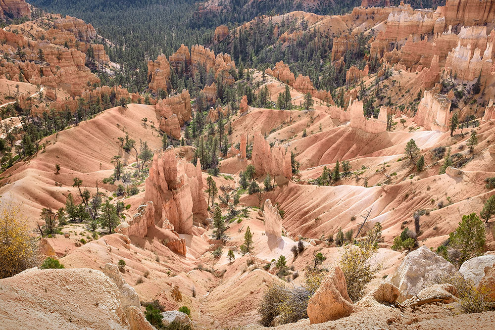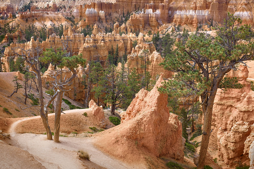 Having been here before, I knew how special it is and how much Kathy would love it. This was her favorite trip venue. The views and hoodoos are endless. This was my first time trekking the Queen’s Garden Trail. While short, it had many amazing views. I wanted to target photos that were different than the traditional compressed focal lengths of canyon layers from Sunrise Point … points of view that are a little more close and intimate, and that illustrate the unlikely ability for vegetation to hang on throughout this brutal canyon. Queens Garden did not disappoint!