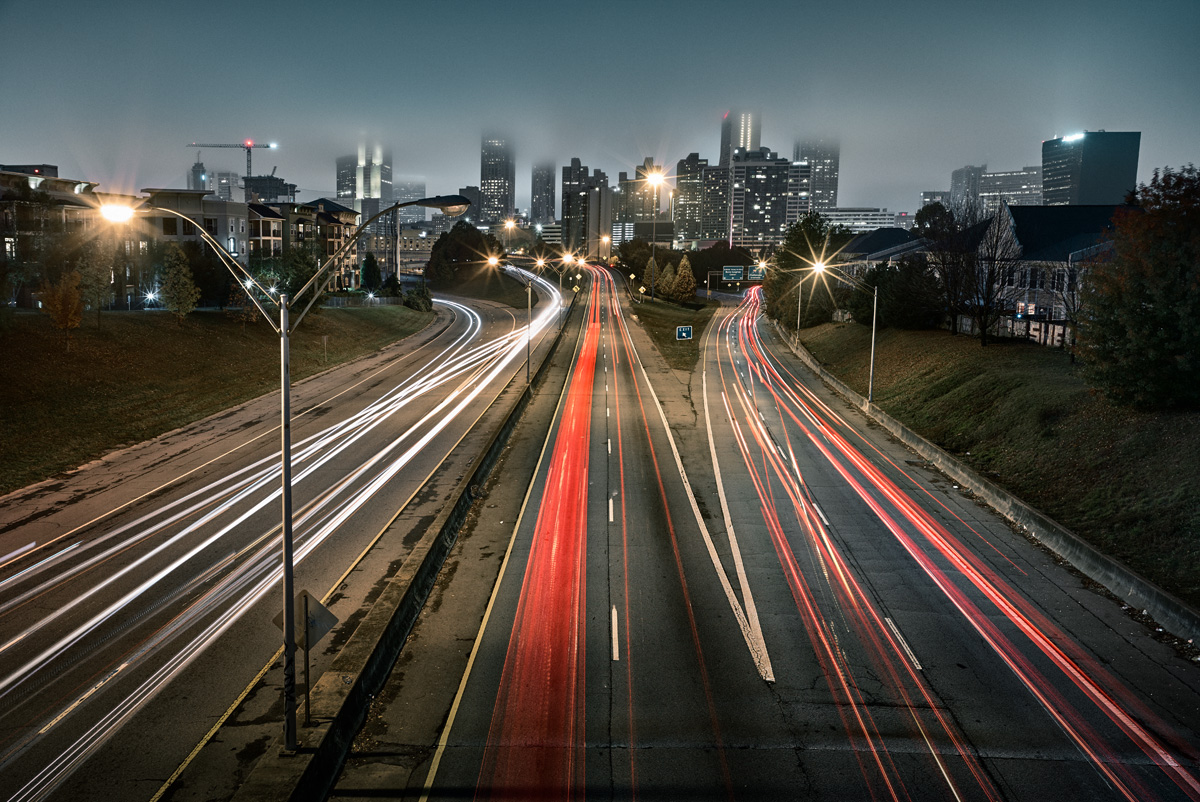 I’ve been wanting to revisit post processing of this image which was previously posted in B&W (with I still love), mainly as a personal challenge.  This ATL skyline vantage point  is “worn out”, but at the same time, it is a classic view.  The color temperature of the sodium vapor lights on the foreground highway have an overpowering yellow cast that is often difficult to edit work with to render a final, pleasing result.  Hopefully I have done justice for the skyline under siege of fog.